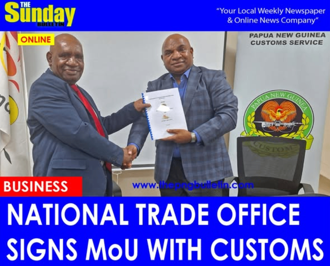 NATIONAL TRADE OFFICE SIGNS MOU WITH CUSTOMSBy DALCY LULUATHE NATIONAL Trade Office (NTO) has signed a Memorandum of Understanding (MoU) with the PNG Customs Service